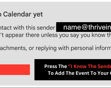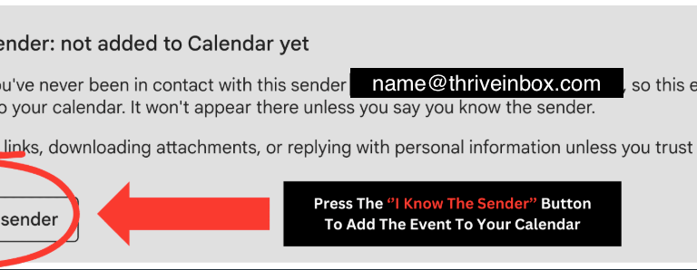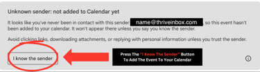 IMPORTANT: The ''invitation from unknown sender'' email may give the option to click 'I know the sender' instead of 'Add to calendar'. If this is the case, please click 'I know the sender' button